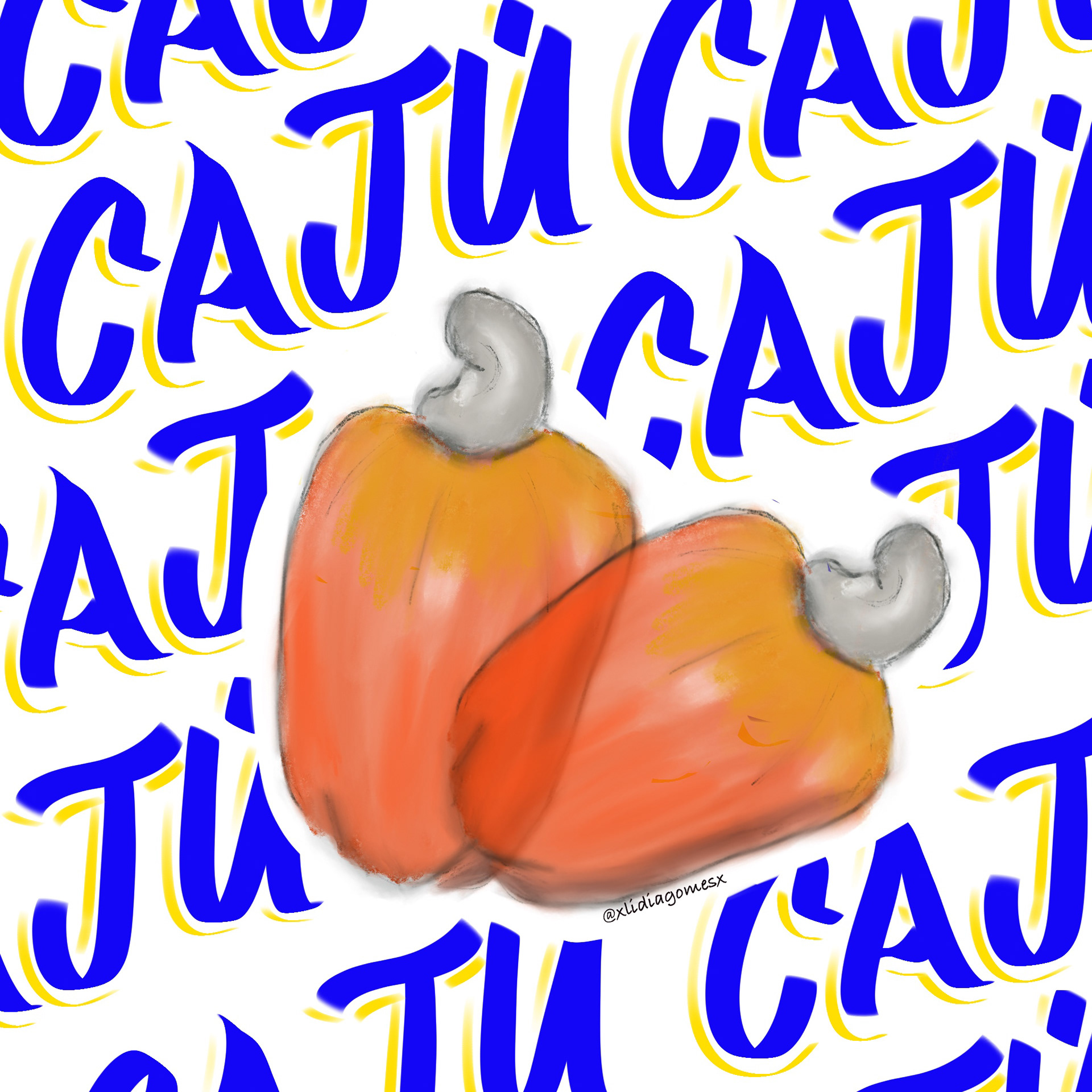 Ilustração digital com o tema de Frutas Tropicais e letras do Alfabeto Popular Brasileiro